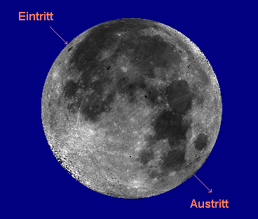 steht am 8. Dezember in Opposition zur Sonne, und bereits am 1. Dezember erreicht er die geringste Distanz zur Erde. Entsprechend geht er bei Sonnenuntergang auf, kulminiert kurz nach Mitternacht und geht bei Sonnenaufgang unter. Der Rote Planet erreicht eine Maximalhelligkeit von –2.0m, so dass nur Jupiter heller als er strahlt. Der Vollmond bedeckt Mars am Oppositionstag. Der Eintritt erfolgt um 6:05 MEZ (Höhe: 20°) und der Austritt um 7:02 MEZ (Höhe: 12°, nautische Dämmerung). Am 22. Dezember passiert Mars den hellen Aldebaran in 8° nördlicher Distanz. Im Teleskop präsentiert sich Mars sehr detailreich. Der Durchmesser des voll beleuchteten Marsscheibchens erreicht den Maximalwert von 17.2“. Bis zum Jahresende nimmt die Helligkeit wieder auf –1.2m, der Scheibchendurchmesser auf 14.7“ ab. Da in dieser Opposition weder die Nord- noch die Südhalbkugel signifikant zu uns geneigt sind, sind die Polkappen eher schwierig zu beobachten. Hingegen zeigen sich viele Albedostrukturen, deren Kontrast (mit Ausnahme der Großen Syrte) aber relativ gering ist, so dass man das Scheibchen schon eine gewisse Zeit betrachten muss, um diese zu bemerken. Mit größeren Instrumenten kann nach den beiden winzigen Monden Phobos und Deimos gesucht werden, die sich aber nie weit vom hellen Planeten entfernen und deren Beobachtung extrem schwierig ist.