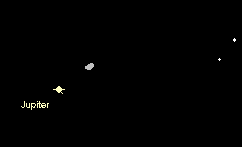 kann im Januar noch leidlich gut mit dem Fernglas gesichtet werden. Der 7.9m helle fernste Großplanet bewegt sich durch den westlichen Teil des Sternbilds Fische, unweit der Grenze zum Sternbild Wassermann. Die beste Beobachtungszeit ergibt sich gleich nach dem Ende der Dämmerung. Die Untergänge des Neptuns verlagern sich von 23:00 MEZ auf 21:00 MEZ, doch wird der Planet etwa zwei Stunden zuvor in den horizontnahen Dunstschichten unsichtbar. Am Abend des 15. Januar passiert der Mond Neptun, wobei er 2.5° unterhalb des fernsten Großplaneten positioniert ist. Teleskopische Beobachtungen können aufgrund der geringen Horizonthöhen nicht mehr sinnvoll durchgeführt werden.