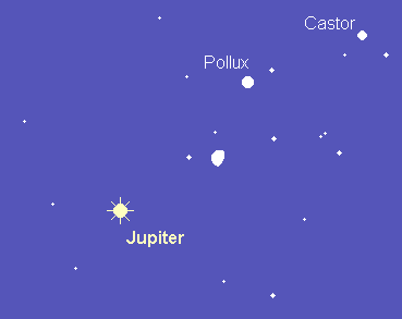 Im Osten ist das Sternbild Zwillinge, mit den beiden helleren Sternen Castor und Pollux, nun ganz aufgegangen, bereichert durch den strahlenden Jupiter. Den Nordosten nehmen die eher unscheinbaren Sternbilder Luchs und Giraffe ein, deren Sterne nur unter dunklem Himmel zu den entsprechenden Figuren zusammengesetzt werden können.